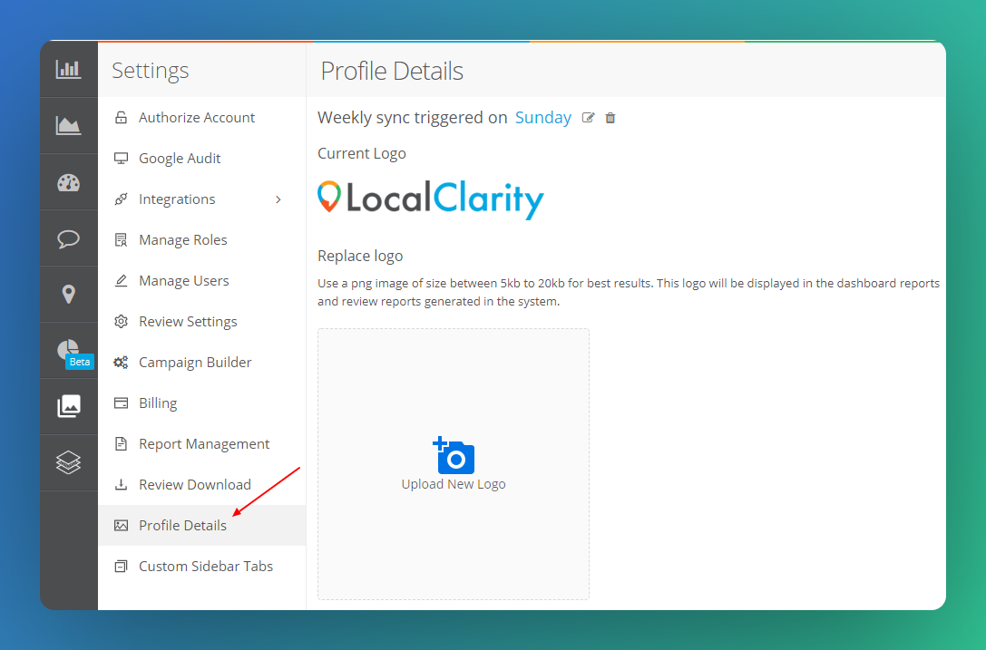 At all subscription tier levels, administrators can upload their logos to customize their LocalClarity profile.